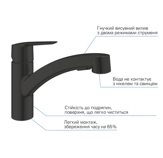 Смеситель для кухни Grohe QuickFix Start однорычажный с выдвижной лейкой черный матовый