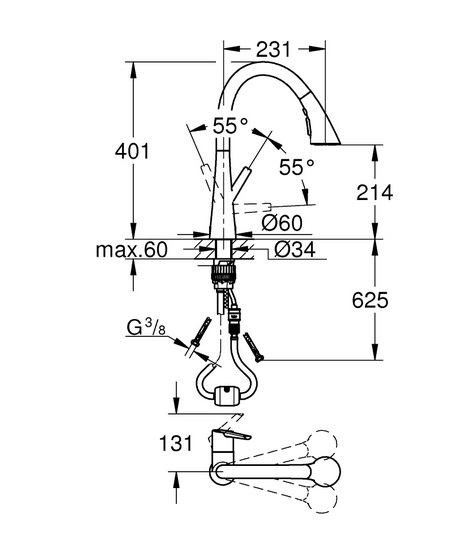 - GROHE Magnetic Docking гарантирует легкое вытяжение и возврат головки аэратора в исходное положение