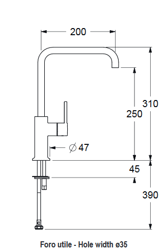 - Длина излива: 190 мм
