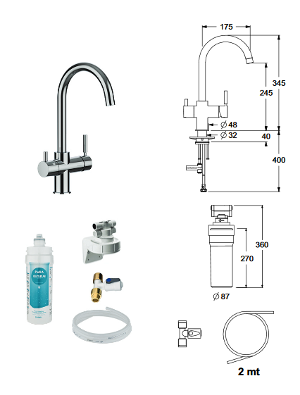 Смеситель для кухни Guglielmi под фильтр черный матовый