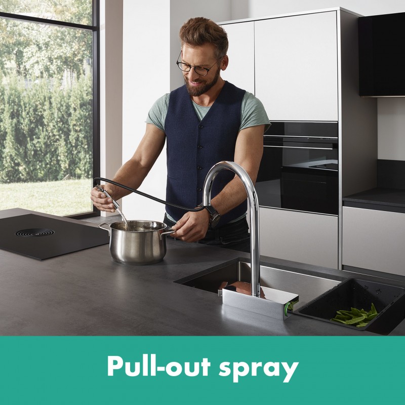 1) Смеситель для кухни Hansgrohe Aquno Select M81 с выдвижной лейкой хром