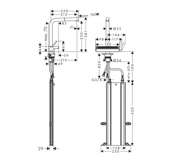 - короб sBox для тихого, плавного, безопасного перемещения шланга в кухонном шкафу, под столешницей; удлинение шланга - до 76 см