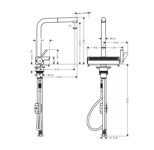 1) Смеситель для кухни Hansgrohe Aquno Select M81 с выдвижной лейкой
