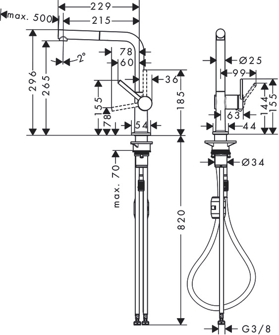 1) Смеситель для кухни Hansgrohe Talis M54 Eco с выдвижной лейкой хром