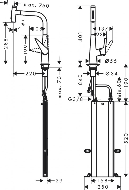 1) Смеситель для кухни Hansgrohe Talis Select M51 300 2jet Sbox с вытяжным изливом однорычажный сталь