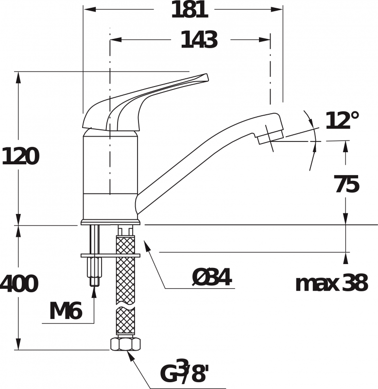 - Принцип смешивания: однорычажный