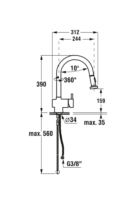 Смеситель для кухни Jika Mio однорычажный с выдвижной лейкой хром