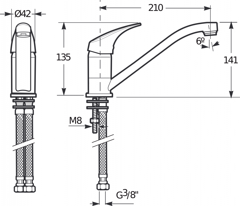 - Длина излива: 210 мм