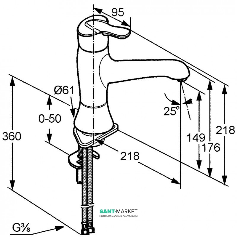 - гибкий подвод воды G 3/8