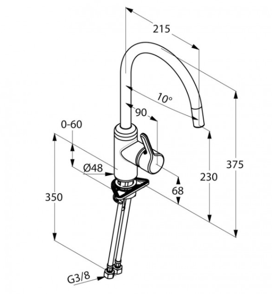 Смеситель Kludi 428039678 монтируется на одно монтажное отверствие. Тип установки - вертикальный. При монтаже используется гибкая подводка G3/8.