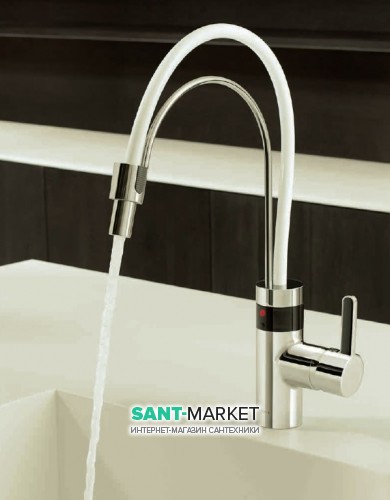 Сенсорный смеситель для кухни с выдвижной лейкой Kludi E-Go однорычажный белый-хром 422150575