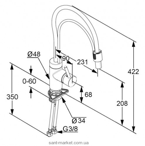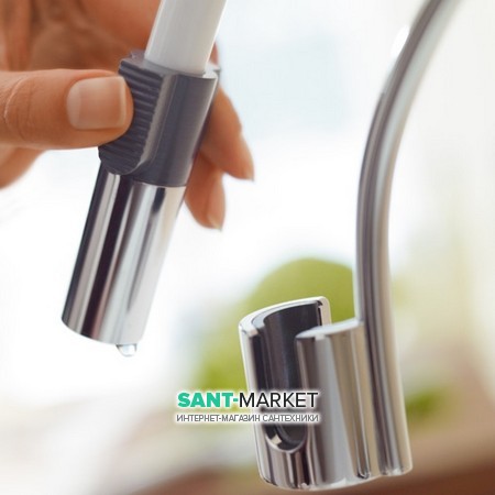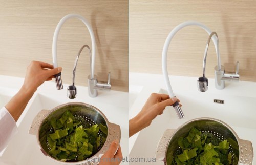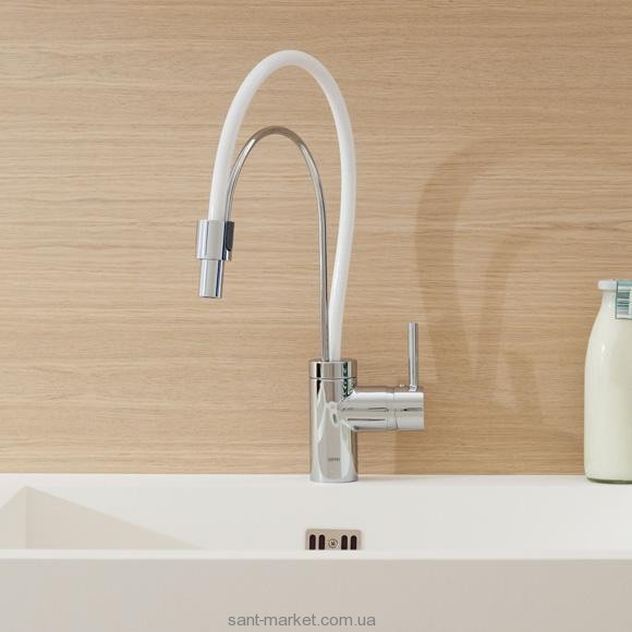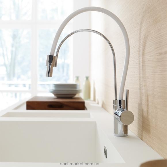 Смеситель для кухни с выдвижной лейкой Kludi E2 однорычажный белый-хром 568599140