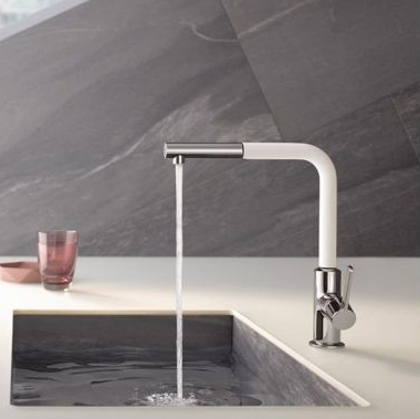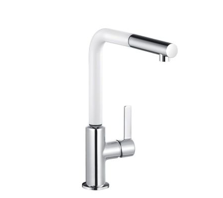 Смеситель для кухни Kludi L-ine S однорычажный, с выдвижным изливом хром/белый матовый.