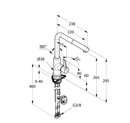 - смеситель с выдвижным изливом позволяет увеличить зону действия струи воды
