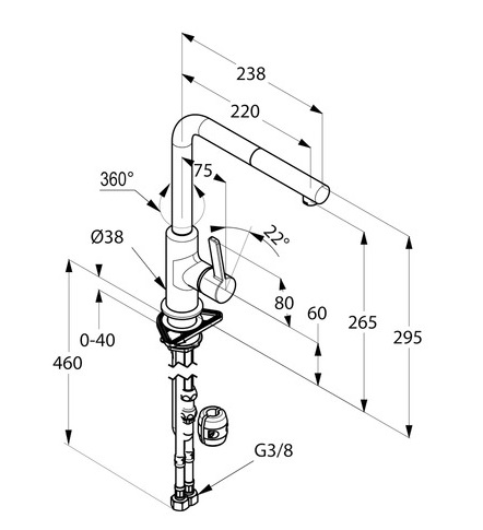 Смеситель для кухни Kludi L-ine S с выдвижной лейкой черный матовый