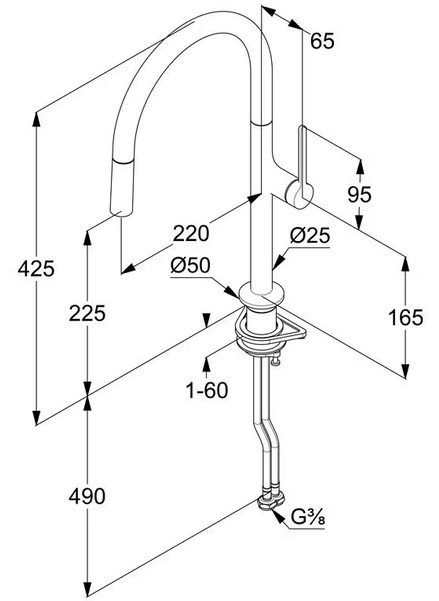 Смеситель для кухни Kludi Reef с выдвижной лейкой брашированное золото