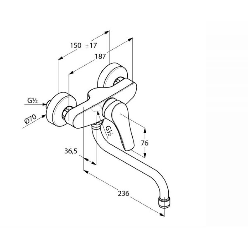 Смеситель для кухни Kludi Tercio 389640575 однорычажный, для настенного монтажа.