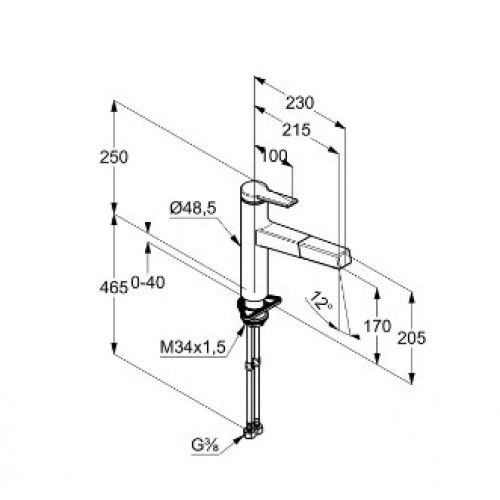 Высота данной модели 25 см. Данная модель оснащена выносным шлангом, а также аэратором M 18x1.