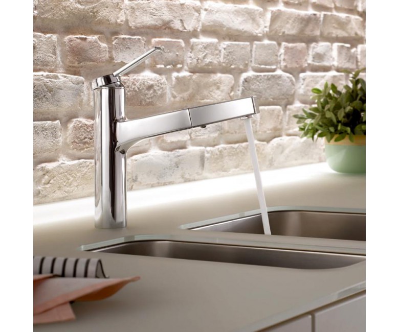 Смеситель для кухни однорычажный с выносным шлангом Kludi Zenta 389810575.
