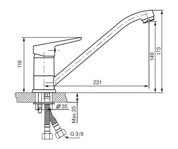 Представленная здесь модель однорычажного, врезного кухонного смесителя TN0900 серии Twin от Koller Pool, оснащается керамическим картриджем от испанской компании Sedal, аэратором от немецкой компании Neoperl с функцией Quick Clean, G3/8 шлангами подвода воды испанской компании Tukai, и поворотным изливом длиной 22.1 см.