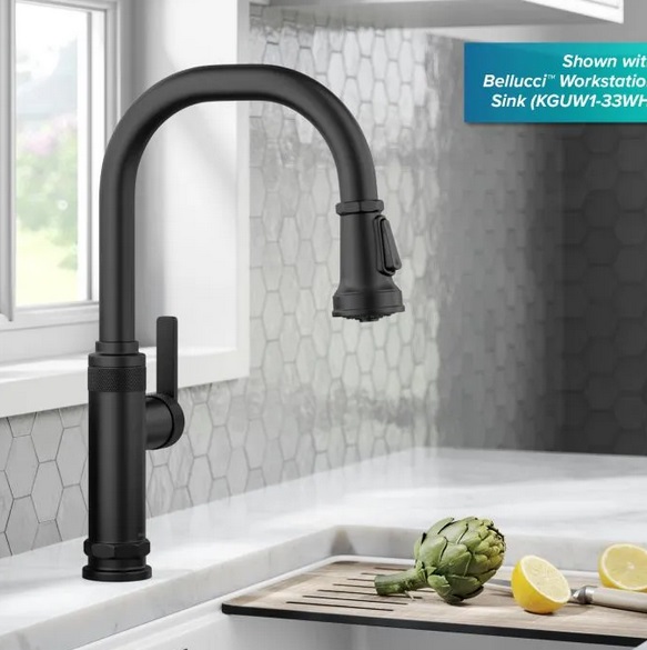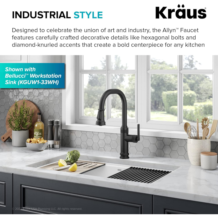 Смеситель для кухни Kraus Allyn с выдвижной лейкой матовый черный