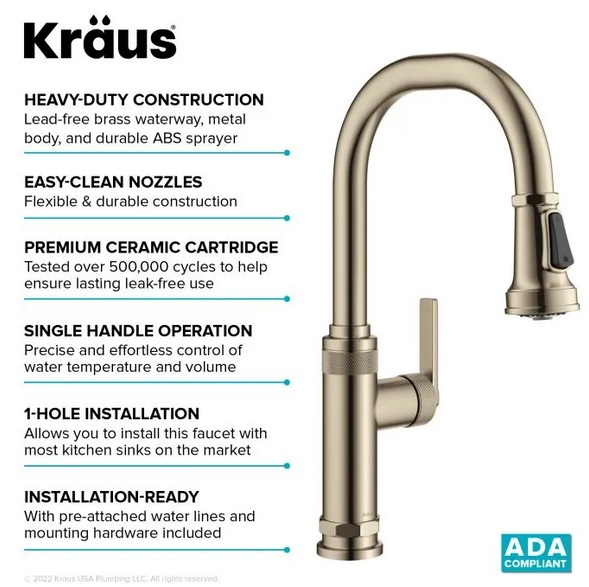 Спешите купить Смеситель для кухни Kraus Allyn с выдвижной лейкой матовый античная бронза KPF-4102SFACB по акционной цене.