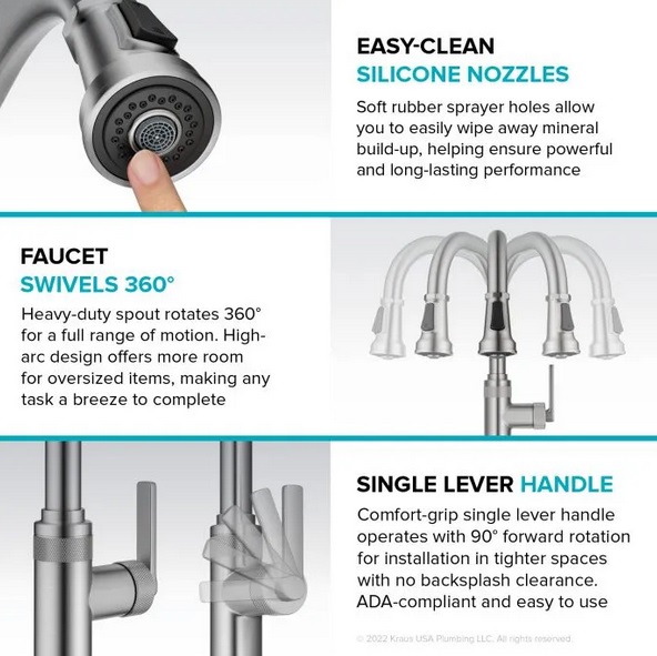 Эстетическое совершенство сантехники Kraus сочетается с высокой функциональностью и эталонным уровнем качества. Вся представленная в каталоге продукция соответствует стандартам США и Канады, а также прошла международную сертификацию (CUPC, CSA, CRG, ANSI, IAPMO и ГТК). Высокотехнологическое производство, тщательное тестирование качества, талантливая команда дизайнеров и инженеров – все эти факторы позволяют американской компании создавать продукт, отвечающий требованиям самых взыскательных потребителей. Сантехника Краус – это статусное приобретение, изысканный элемент интерьера, удобство эксплуатации и долговечность комплектующих.