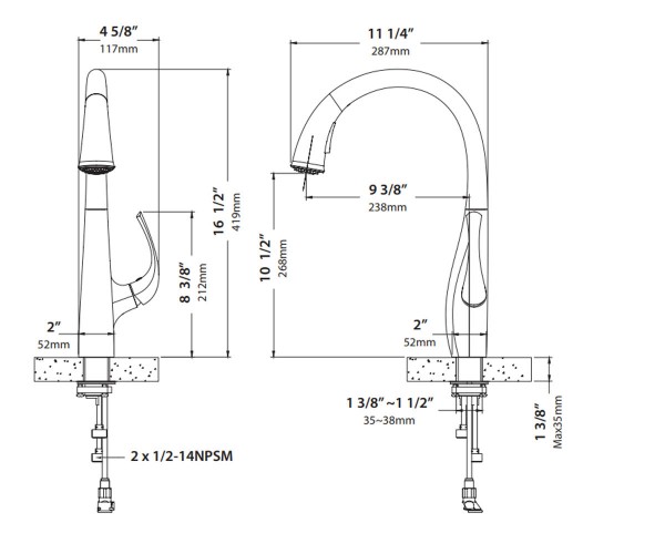 - Плетеный нейлоновый шланг с 16-дюймовым радиусом действия обеспечивает полную гибкость при выполнении любых задач на кухне