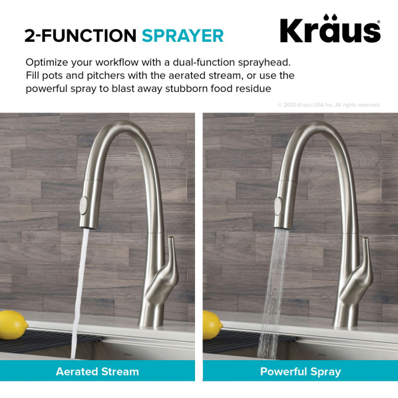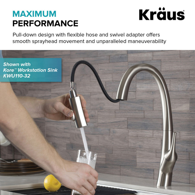 Смеситель для кухни Kraus Arqo с выдвижной лейкой латунь сатин KPF-2523SFS