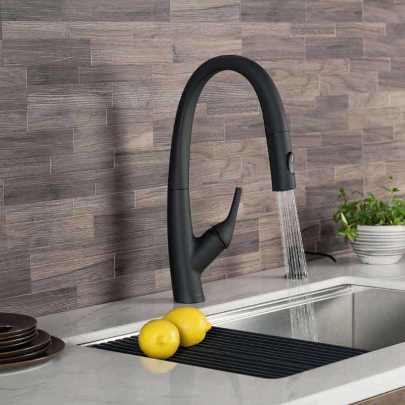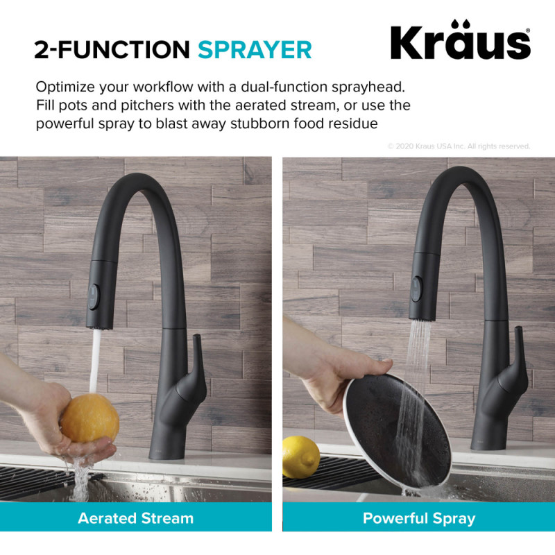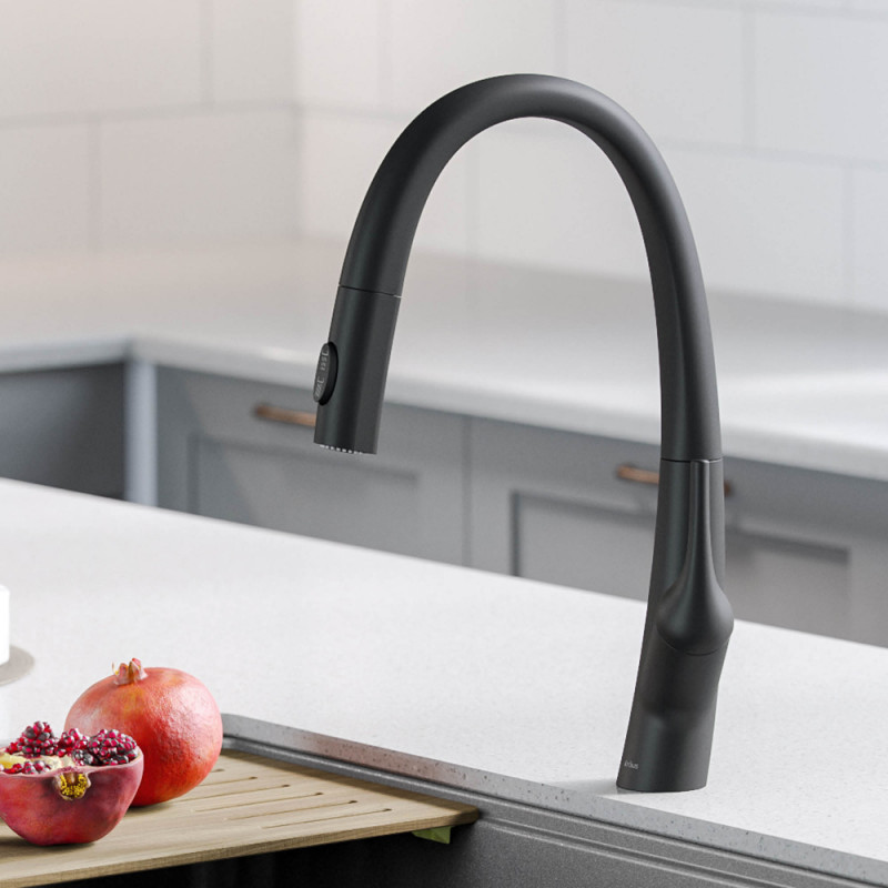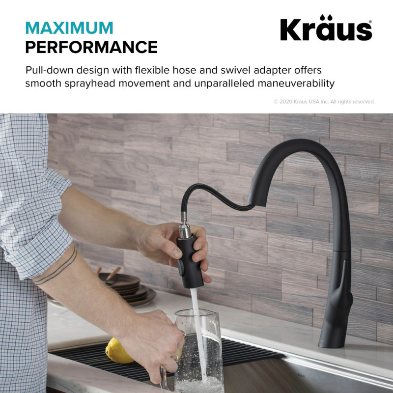 Смеситель для кухни Kraus Arqo с выдвижной лейкой латунь матовый черный