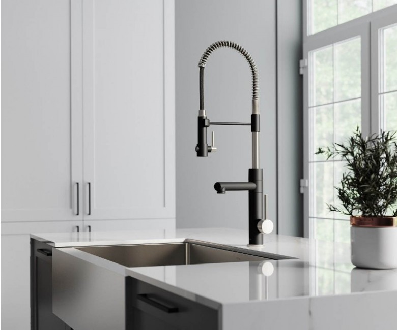 Смеситель для кухни Kraus Artec Pro однорычажный нержавеющая сталь/матовый чёрный