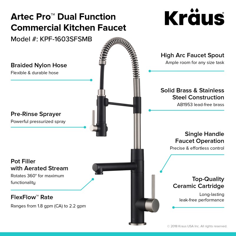 Смеситель для кухни Kraus Artec Pro нержавеющая сталь/матовый чёрный KPF-1603SFSMB
