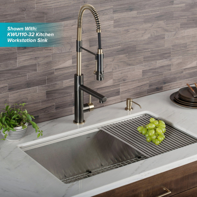 Смеситель для кухни Kraus Artec Pro с выдвижной лейкой черная сталь/матовое золото KPF-1603SBBG