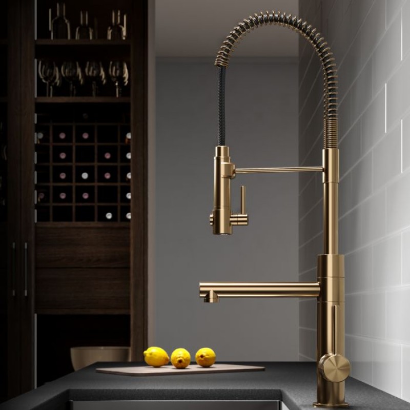 Смеситель для кухни Kraus Arteс Pro однорычажный два отдельных крана золото KPF-1603BG