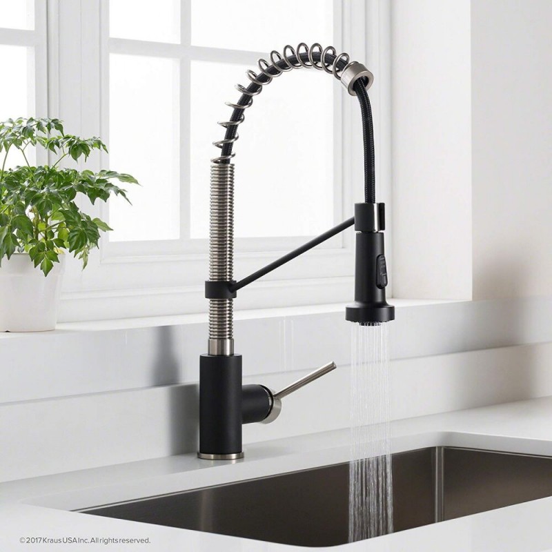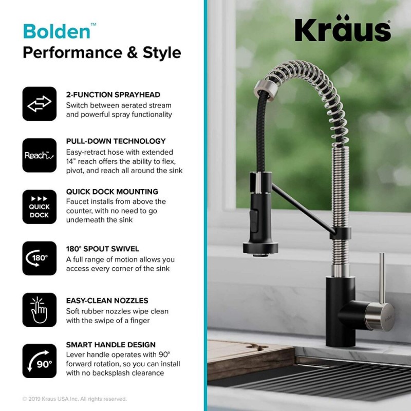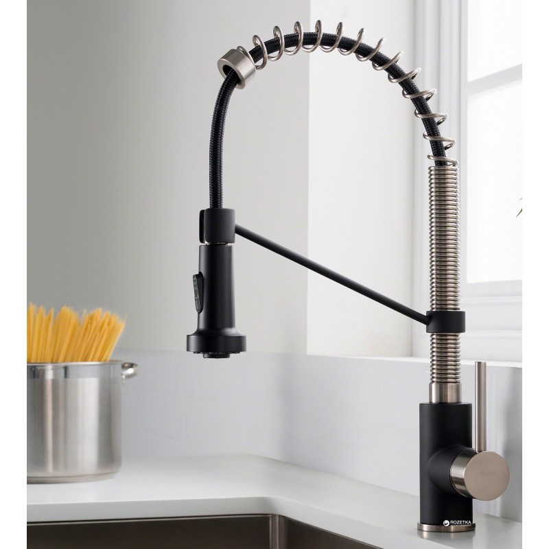 Смеситель для кухни Kraus Bolden нержавеющая сталь/чёрный матовый
