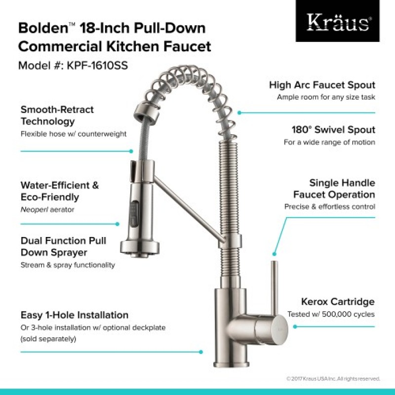Смеситель для кухни Kraus Bolden пружинный нержавеющая сталь KPF-1610SS