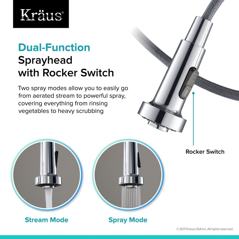 - Двухфункциональный распылитель с переключателем Rocker обеспечивает попеременное переключение режима подачи воды и легкий переход от аэрированного потока к мощному спрею. Позволяет выполнять любые функции - от ополаскивания до интенсивной чистки.