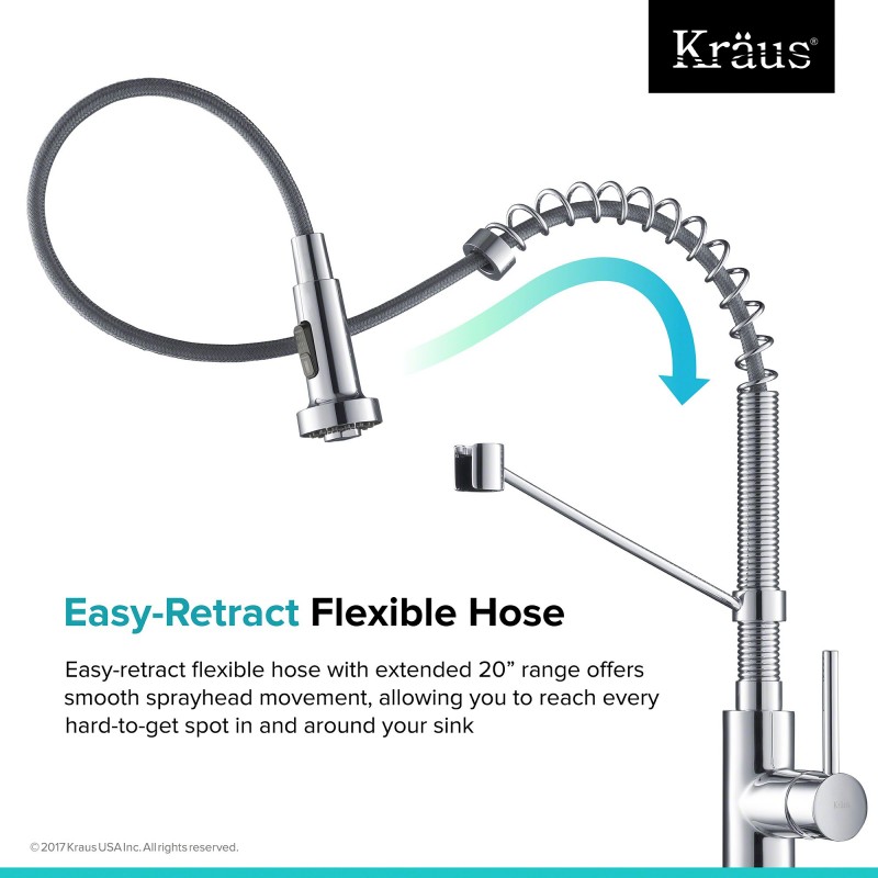 - Уникальный коммерческий дизайн с гибким шлангом и нейлоновым распылителем. Гибкий шланг отличается гладкой ретракцией (втягиванием) и удлиненным диапазоном действия