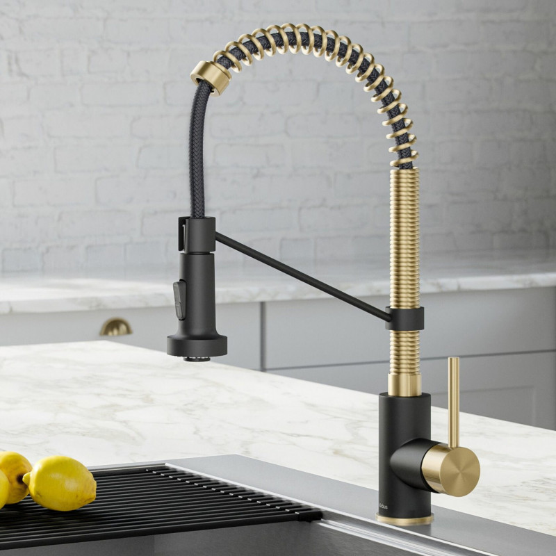 Пружинный смеситель с выдвижной лейкой Bolden KPF-1610 от Kraus подходит для большинства кухонь, имея высоту 456 мм. Преимуществом этой модели является также выдвижная лейка на гибком шланге длиной 406 мм, что обеспечивает превосходную маневренность. 2-функциональная эргономичная лейка с переключателем дает пользователям возможность мгновенно переключаться из режима аэрированного потока в режим мощного душа.