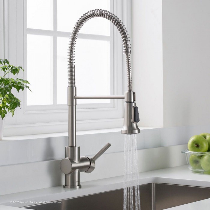 Смеситель для кухни Kraus Brit пружинный с выдвижным шлангом сатин