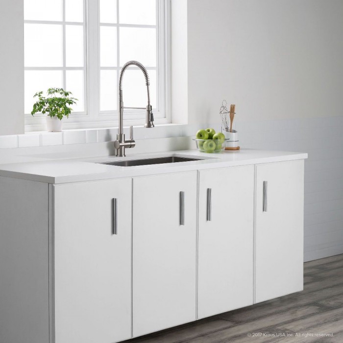 Смеситель для кухни Kraus Brit пружинный с выдвижным шлангом сатин KPF-1690SFS