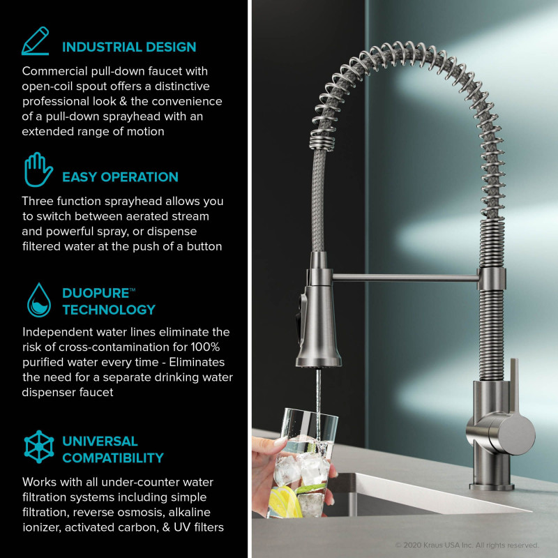 КРАН С ФИЛЬТРОМ ДЛЯ ВОДЫ 2-В-1: Кухонный кран с функцией фильтра обеспечивает легкий доступ к фильтрованной воде для питья, приготовления пищи или наполнения бутылок с водой и лотков для льда - устраняет необходимость в отдельном кране с дозатором питьевой воды