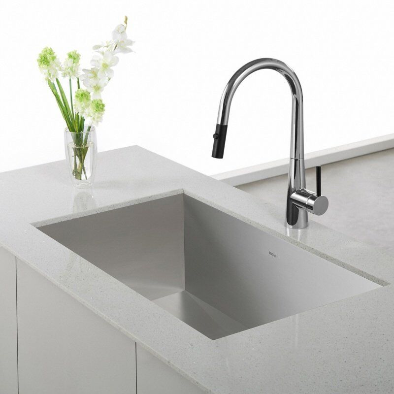 1) Смеситель для кухни Kraus Crespo однорычажный хром