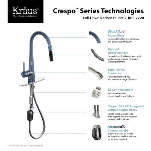 Смеситель для кухни Kraus Crespo однорычажный хром KPF-2720CH