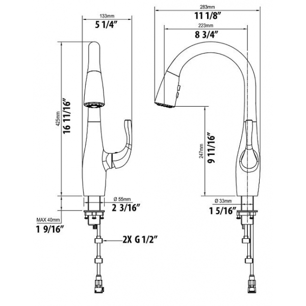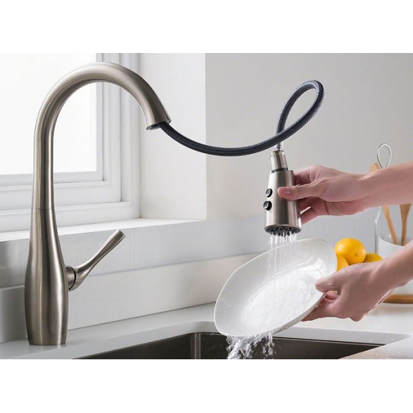 - Безотказный механизм втягивания распылительной головки - надежно защелкивается без провисания. Противовес обеспечивает плавный отвод и стабильное удержание