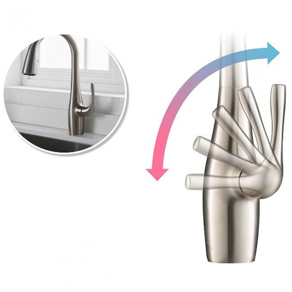 - Радиус вращения смесителя 360º обеспечивает полный доступ к кухонной раковине