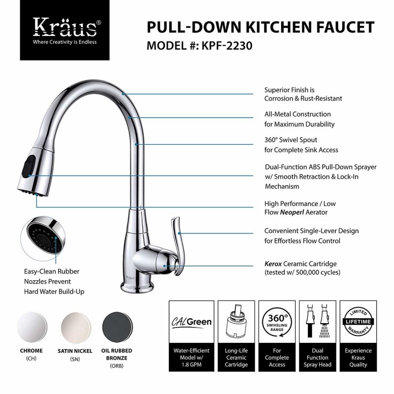 Смеситель для кухни Kraus однорычажный хром KPF-2230CH