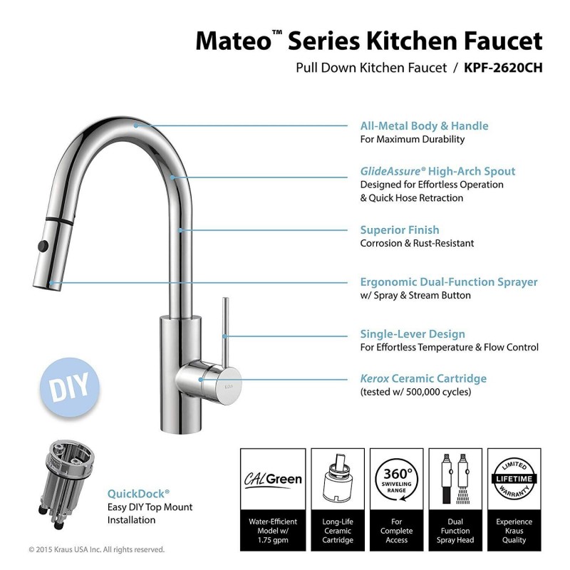 Спешите купить Смеситель для кухни Kraus Oletto однорычажный хром KPF-2620CH по акционной цене.