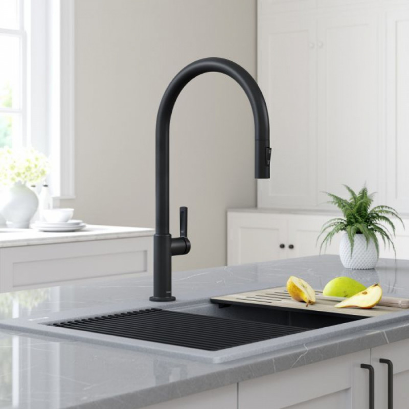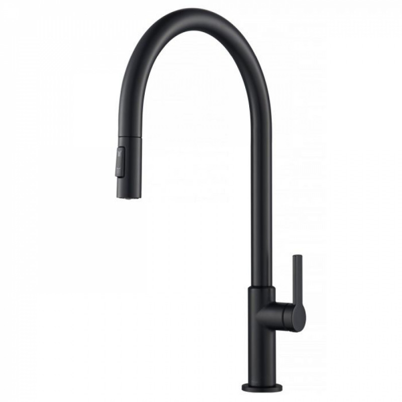 Смеситель для кухни Kraus Oletto с выдвижной лейкой латунь матовый черный