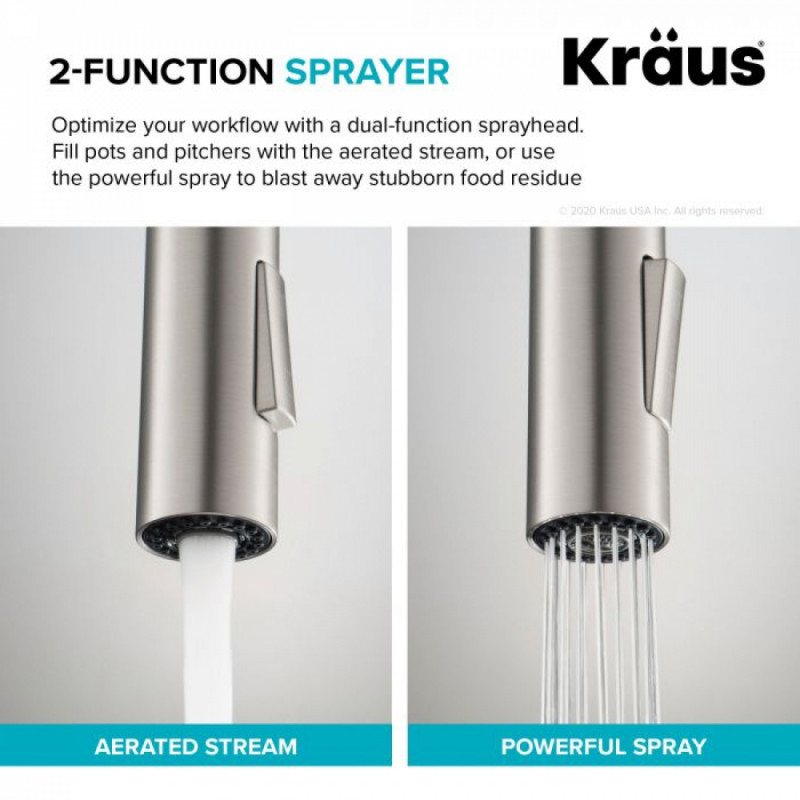 Смеситель для кухни Kraus Oletto с выдвижной лейкой латунь матовый черный KPF-2821MB